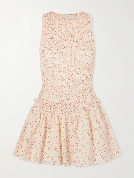 FAITHFULL Gala smocked polka-dot cotton-voile mini dress