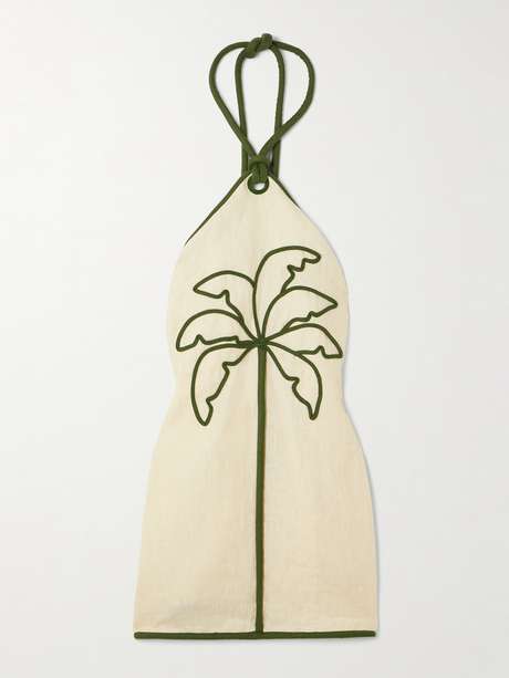 Channeling its native Rio de Janeiro, Farm Rio’s dress captures the city’s laid-back charm. Cut from lightweight linen, the halter neckline frames the shoulders, while leaving the back bare. Accented with a palm-tree appliqué and contrast trims, it instantly evokes the feel of sun-soaked days.