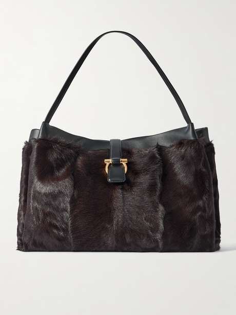 Ferragamo's bag has a slouchy design with gusseted sides that mimic the shape of a lily, a historic symbol of Florence. The perfect cold-weather accessory, it's been made in Italy from plush shearling trimmed with leather and features the house's 'Gancio' buckle. It'll comfortably hold headphones, a tablet and a small cosmetics pouch.
