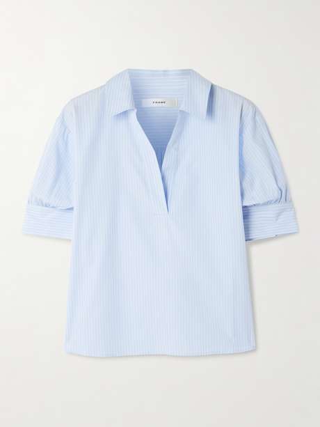 FRAME's 'Popover' blouse is ideal for both work and weekends. It's cut from cotton-poplin, detailed with pinstripes, a V-neckline and puffed sleeves.
