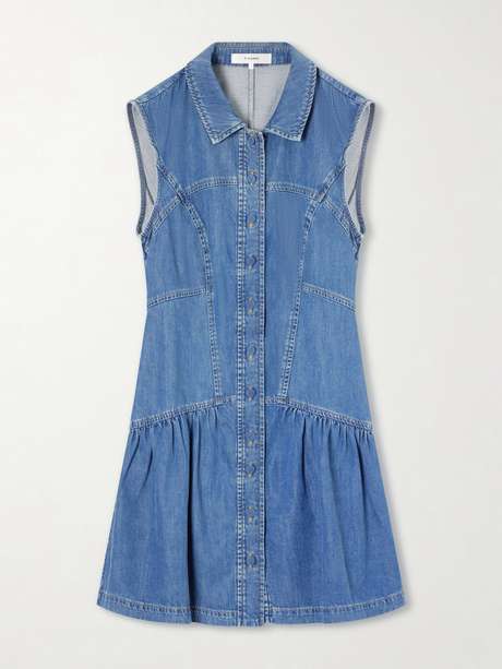FRAME's dress is cut from denim with a fitted bodice and softly flared mini skirt. Designed with a point collar and button-through front, it offers a structured yet easy feel.