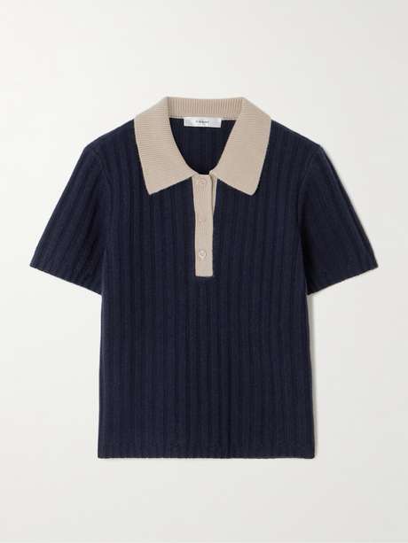 FRAME's sweater is knitted from sumptuous cashmere using a thick ribbed stitch. It's designed for a close fit and has contrast trims along the polo collar and placket. Wear yours with the label's jeans.