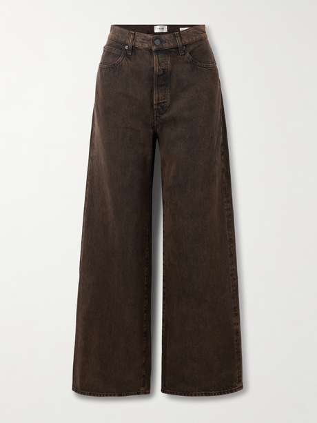 FRAME's 'The Collegiate' jeans have a wide-leg shape that gives them a cool, '70s feel. Designed to sit high on the waist, they're made from rigid denim in a dark-brown wash called 'Nightmoth'.