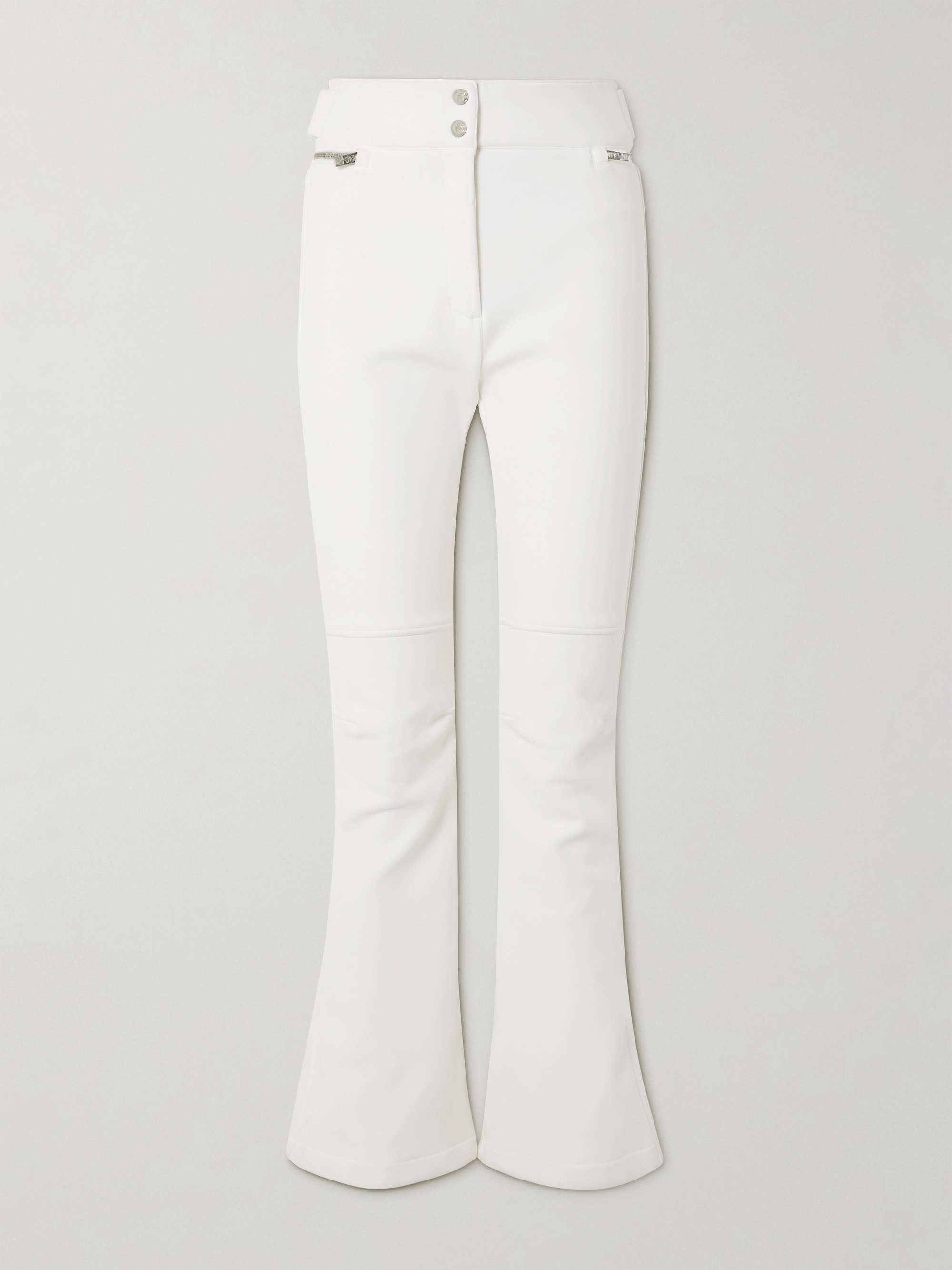 A comfortable high waist and good fit over your boots are essential when it comes to the perfect ski pants - it's a combination Fusalp has down to a fine art. This 'Elancia II B' style is cut from windproof softshell that's blended with stretch and backed in soft fleece for warmth. Articulated knees allow for freedom of movement on the slopes, while grippers along the hems help keep the snow out.