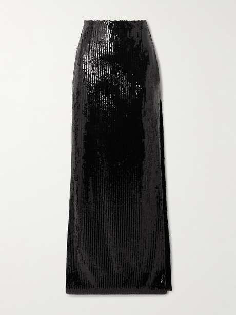 Galvan's 'Beating Heart' maxi skirt is designed to be worn as a set with the coordinating cropped top. Made from lightweight tulle, it's dripping in tonal sequins and has a high side slit.