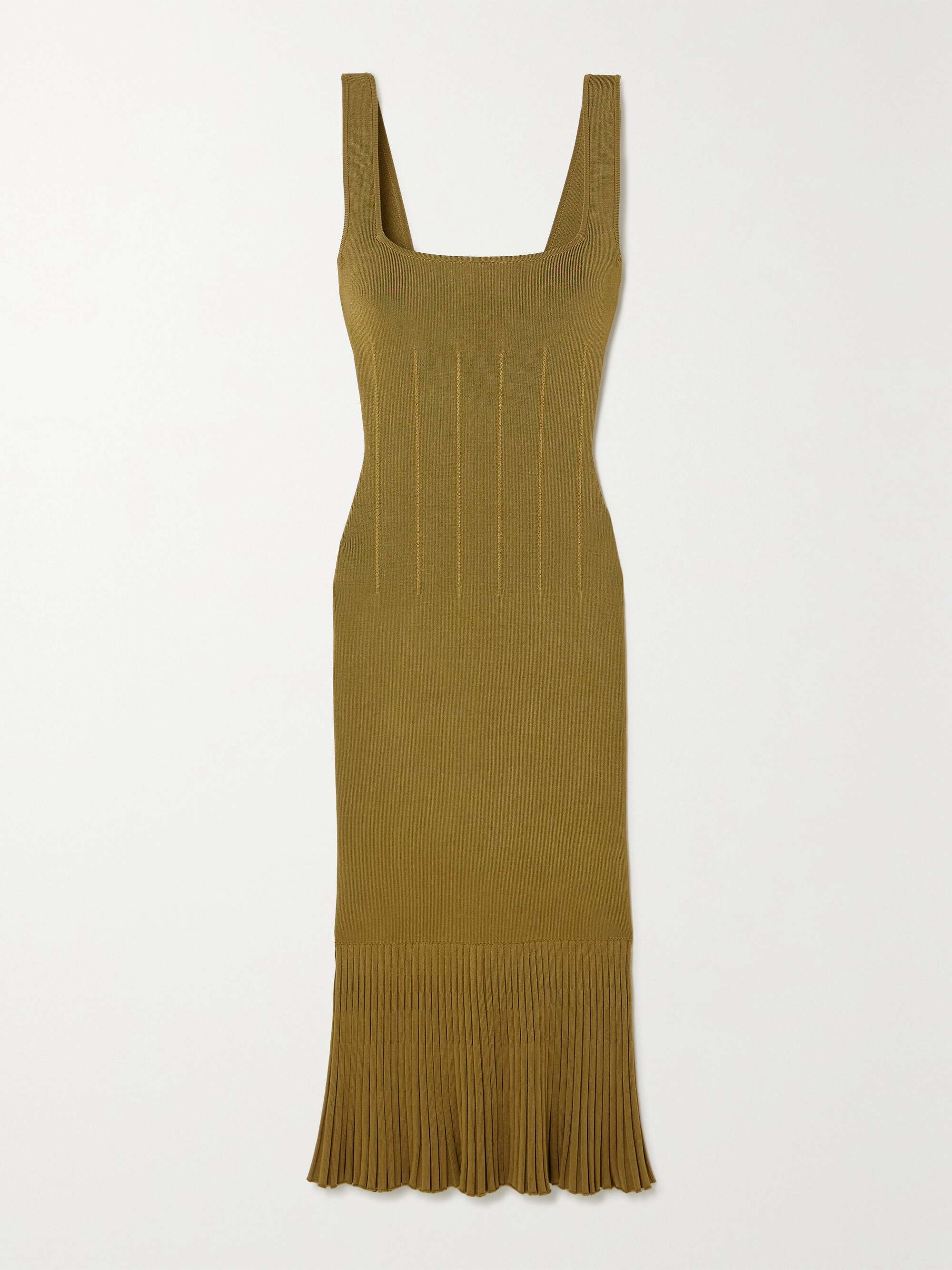 GALVAN Atalanta pleated metallic stretch-knit midi dress