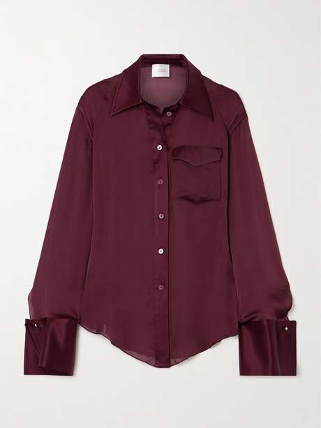 Galvan's 'Strata' blouse is a shortcut to sophistication. It's cut in a relaxed profile from silk-chiffon with subtly contrasting satin paneling. Inspired by men's shirting, the double cuffs are finished with spherical, silver-tone cufflink embellishments.