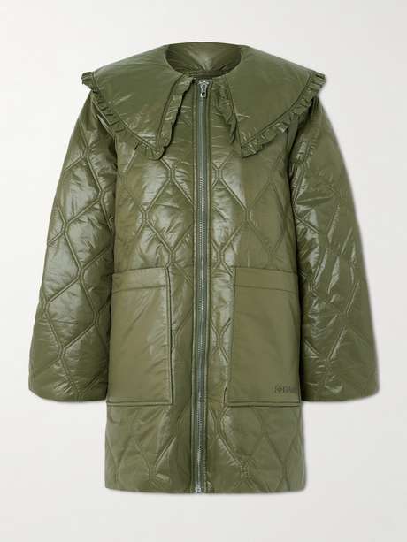 GANNI's padded jacket is delightfully feminine and full of character. Cut from quilted recycled-shell, it has sizable patch pockets and a widespread peter pan collar trimmed with ruffles. The splits at the hem enhance the loose shape.