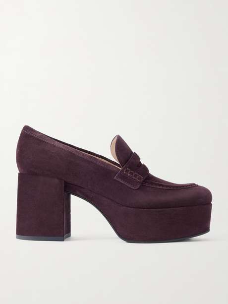Gianvito Rossi's platform pumps are set on an 80mm block heel that feels tastefully retro. In deep burgundy, they're made from suede with penny slots on the vamp.