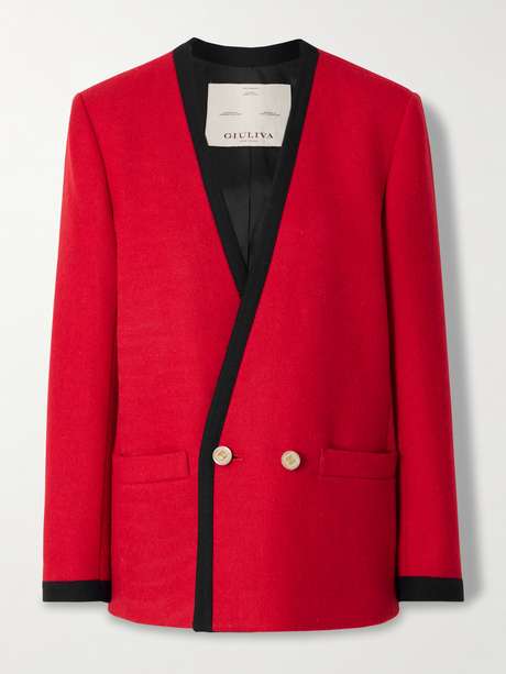 Giuliva Heritage's 'The Charlotte' blazer feels so unique within the category. Inspired by vintage styles, it's made from wool and mohair-blend with contrast edging along the cuffs and collarless neckline. Pair yours with 'The Paola' pants.