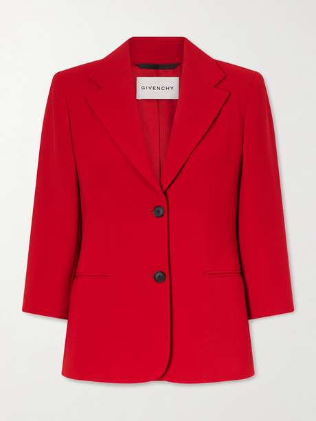 Givenchy's blazer is tailored from crepe-cady in a striking red shade. It has a single-breasted profile, slightly cropped sleeves and a smooth satin lining. Wear yours as a suit with the matching pants, or style it like the brand does with slouchy denim.