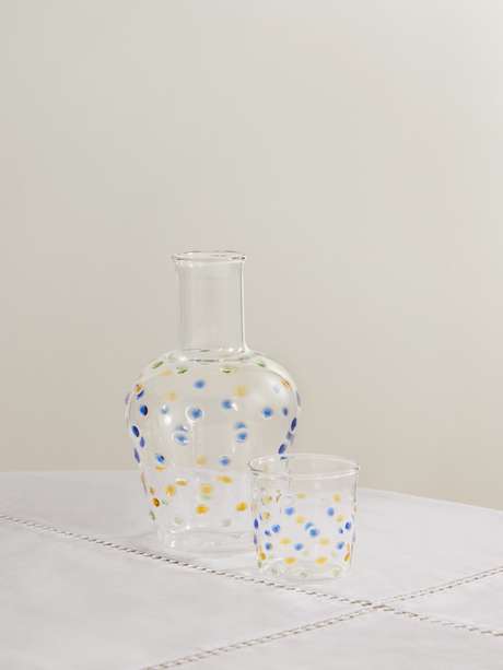 Gohar World's carafe will make a beautiful addition to any tablescape. It's been mouthblown in Egypt from Borosilicate glass and painted with colorful spots.