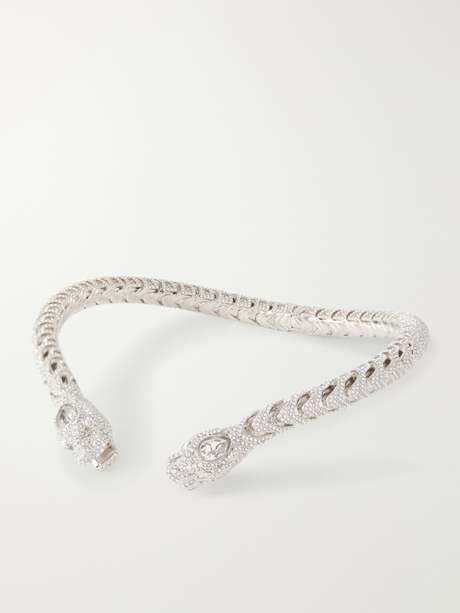Chokers are back (again) and Gucci's 'Dionysus' design is leading the charge. Made from silver-tone metal, it's encrusted with shimmering crystals and finished with sculpted tiger-head tips. Let it frame a plunging neckline.