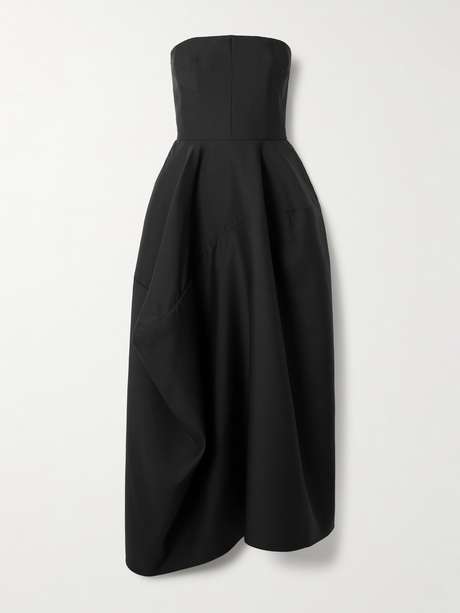 HEIRLOME Barbara strapless asymmetric gathered draped silk maxi dress