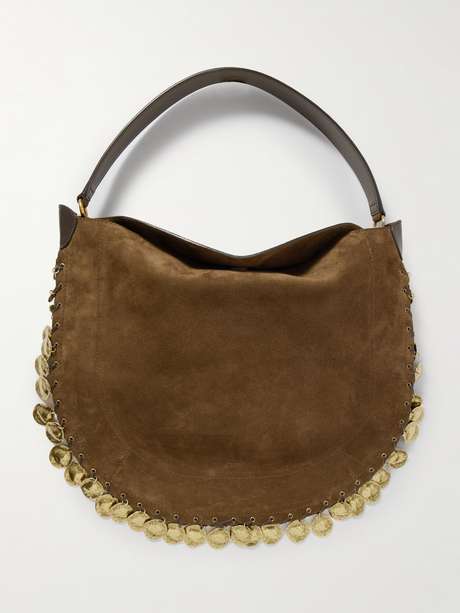 ISABEL MARANT Oskan Soft embellished leather-trimmed suede shoulder bag