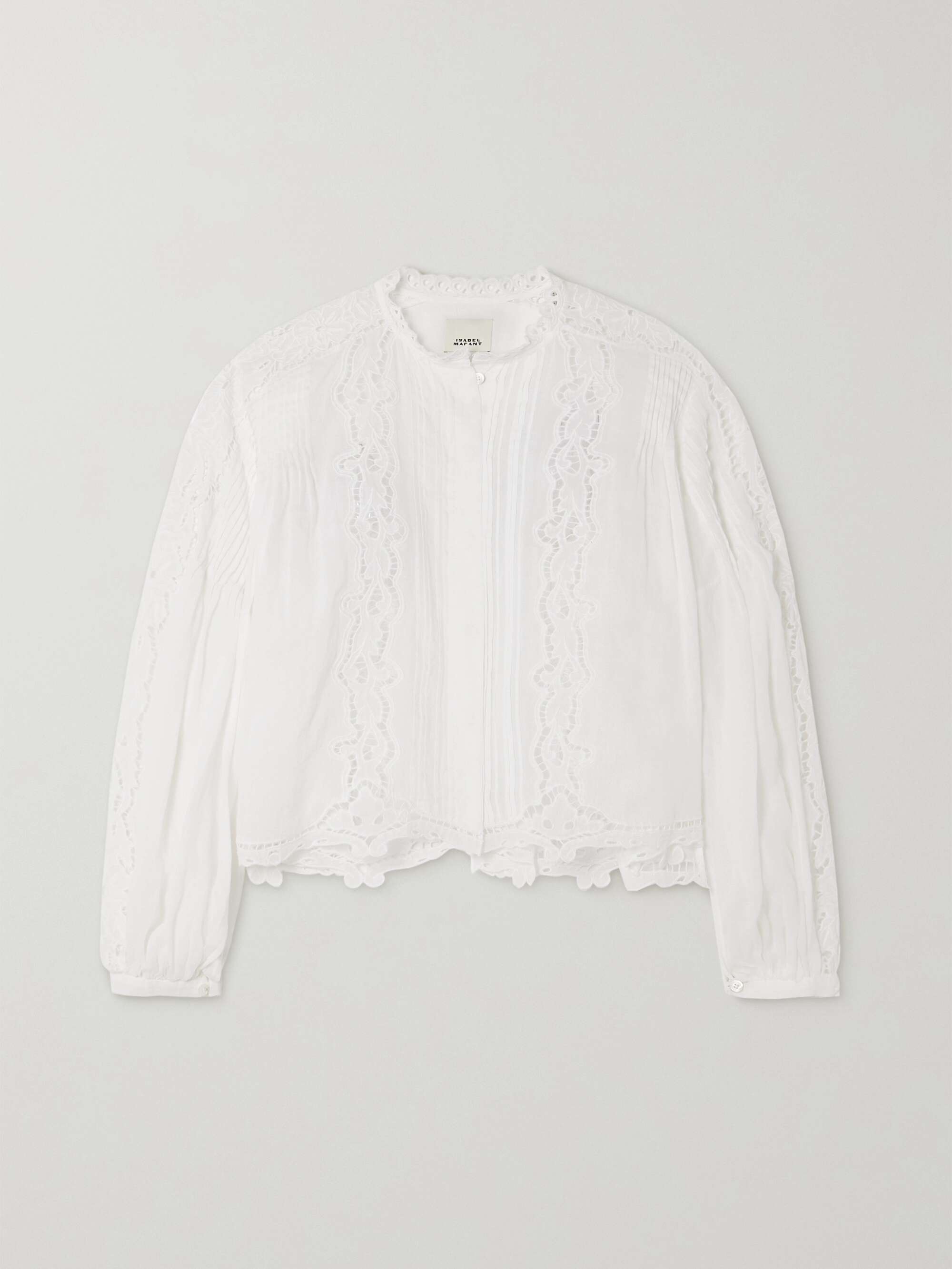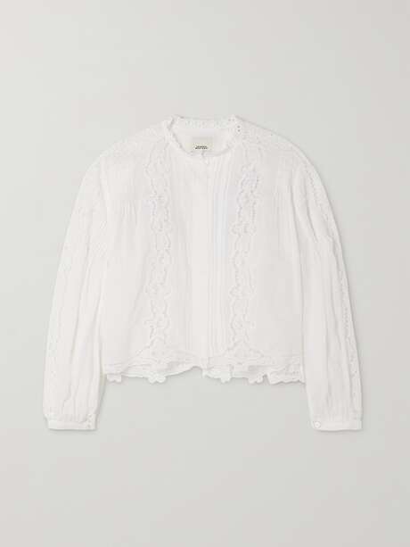 ISABEL MARANT Kubra guipure lace-trimmed pleated ramie blouse