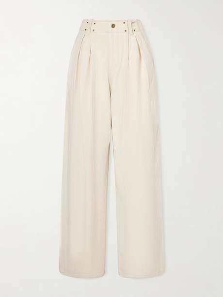 Isabel Marant's 'Ireme' jeans are made from cotton-denim and cut for a structured silhouette. Wide panels and frontal pleats add to their unique appeal, while stud embellishments draw attention to the waistband. Pair them with a soft blouse.