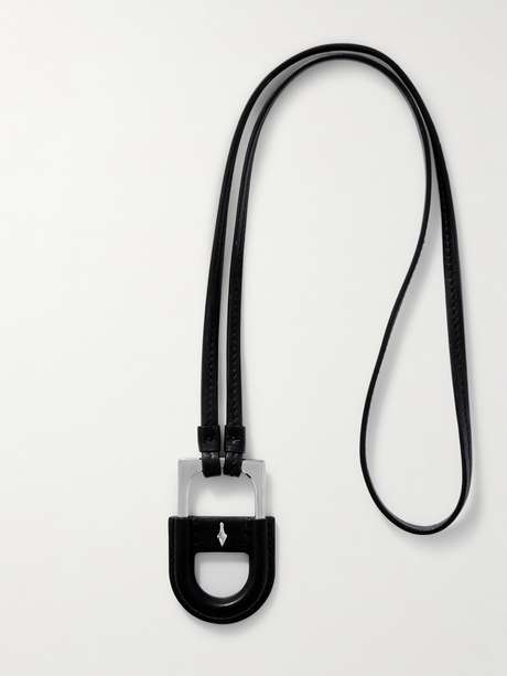 Jacques Marie Mage's 'Bolin' necklace is inspired by cowboy gear from Hollywood's golden age of Westerns. Handcrafted in Italy from leather and silver-tone metal, it’s strung with a stirrup-shaped pendant and detailed with the label's signature arrowhead pin. Use it to keep your sunglasses within reach.