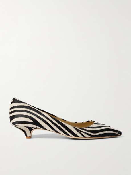 Jamie Haller's pumps will be a talking point whenever you wear them. They're made from zebra-print pony hair and have 50mm kitten heels.