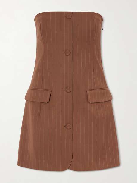 Jean Paul Gaultier brings a sharp sensibility to this tailored mini dress. It's made from pinstriped wool-blend twill in a strapless design that balances clean lines with a body-skimming silhouette. Style it with pointed heels lean into the bold, modern attitude.
