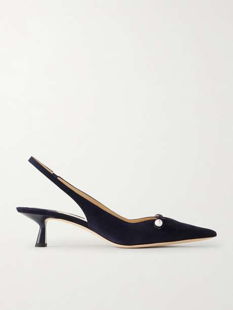 JIMMY CHOO Amita 45 faux pearl-embellished suede slingback pumps