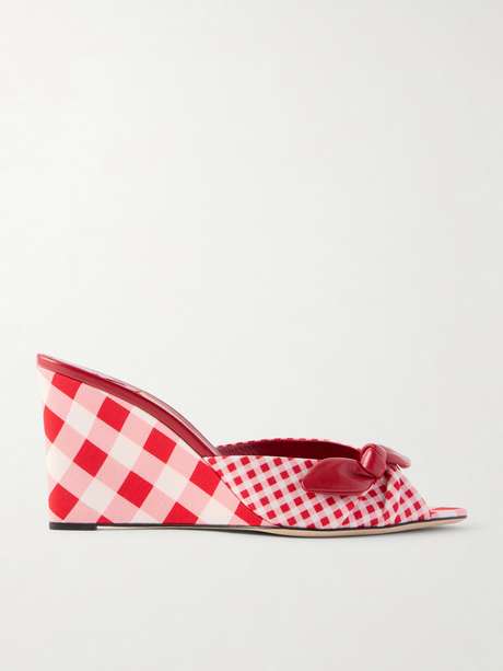 Jimmy Choo’s 'Livi' mules are a perfect summer staple. Crafted from fabric in a playful checked pattern, they feature an open-toe design adorned with a satin bow and are set on 85mm wedges. Pair them with dresses or trousers for effortless, all-day style.