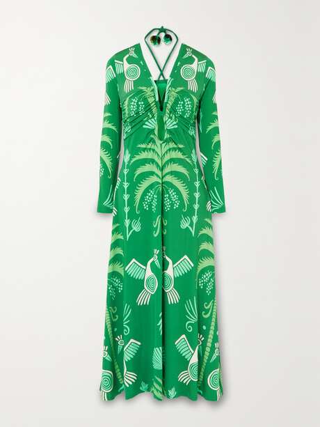 JOHANNA ORTIZ + NET SUSTAIN Spiral Nebulas embellished printed stretch-jersey midi dress