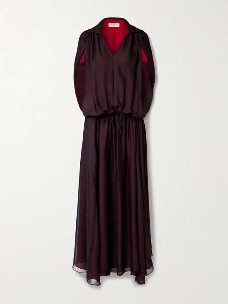 KALLMEYER's 'Gillian' dress is defined by its billowy shape that can be cinched with the drawstring ties at the waist. It's made from layers of contrasting silk-chiffon and has cape-effect sleeves and a V-neckline.