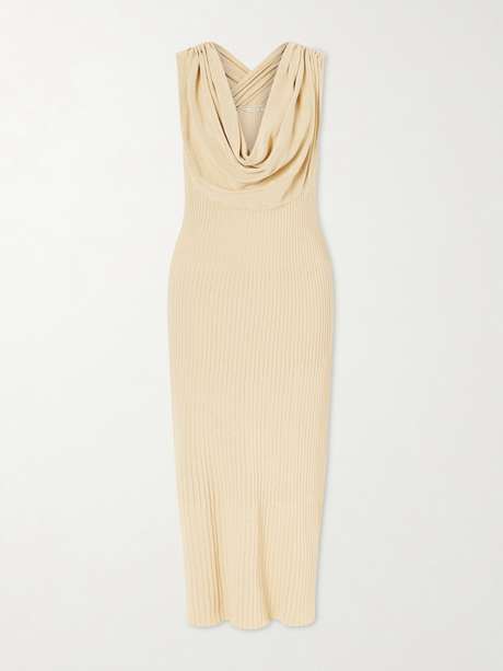 KALLMEYER's 'Manon' dress is made in New York from ribbed cotton-blend that hugs the figure. It has an elegant cowl neckline that contrasts the straight silhouette. Style it with minimal sandals and statement earrings.