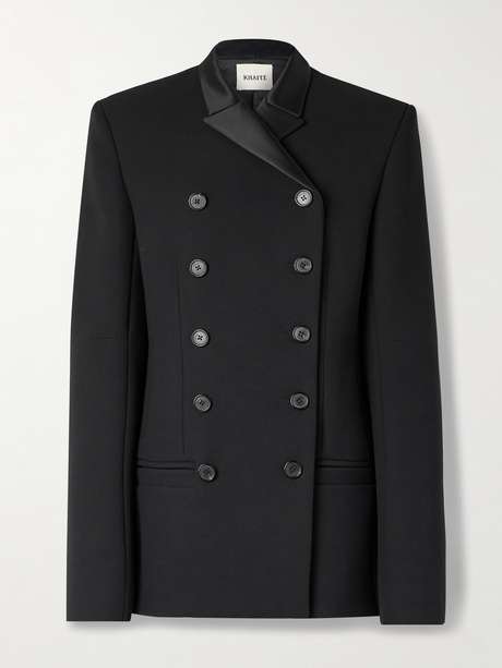 KHAITE Sabel double-breasted satin-trimmed crepe blazer