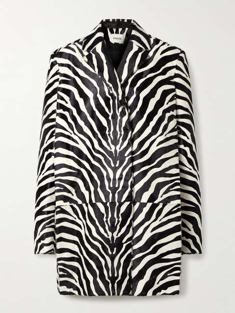 KHAITE's 'Lorel' coat exemplifies the brand's mastery of statement outerwear. It's made from panels of calf hair patterned with zebra stripes and has a relaxed shape with a notched collar.