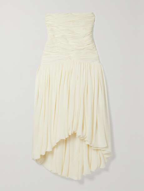 • KHAITE Shivani strapless gathered silk crepe de chine midi dress