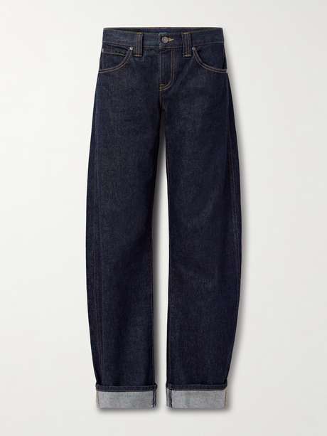 KHAITE's 'Karo' jeans are crafted from dark-blue denim with a mid rise waist and barrel legs. They'll go with everything from plain tees to polished blouses.