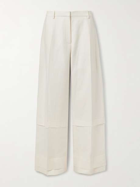 EXCLUSIVE AT NET-A-PORTER. KHAITE's 'Linden' pants are designed with tiered, frayed hems for a laid-back look. They're cut for a wide-leg fit from lightweight linen and sit low on the hips. Style yours with a tucked-in tank or a button-down shirt, depending on the occasion.