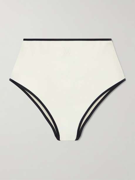 Kiki de Montparnasse’s 'Contrast' bikini briefs are crafted from matte, soft jersey. They sit high on the waist and feature contrasting trim that subtly enhances the back with a small cutout. The front is finished with the embossed 'KK' logo for a polished, signature touch. Wear it with the matching top for a sleek coordinated swim set.