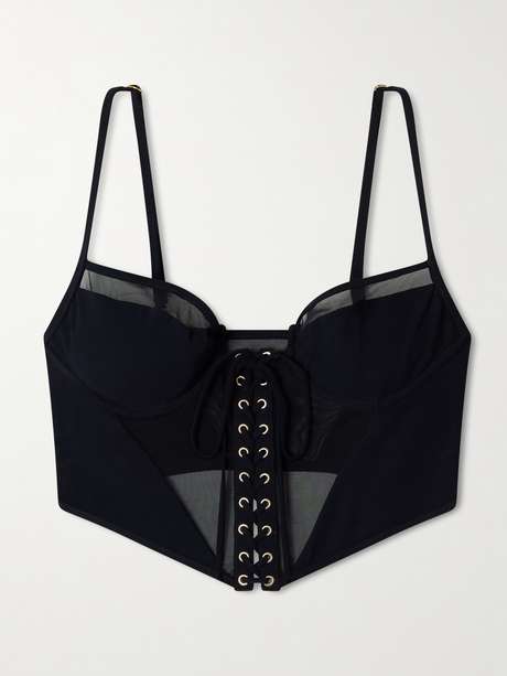 KIKI DE MONTPARNASSE Peep tulle-trimmed corset bikini top