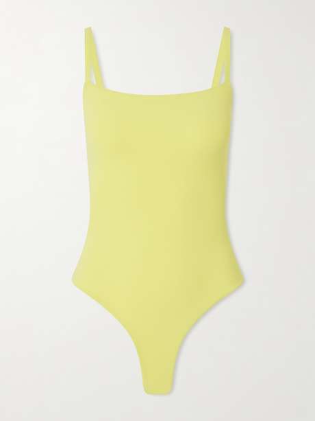 The sunny shade of Kiki de Montparnasse's 'Euchaffe' swimsuit promises to brighten up your swimwear collection. It has a square neckline and high-rise briefs for a lengthened, flattering silhouette.