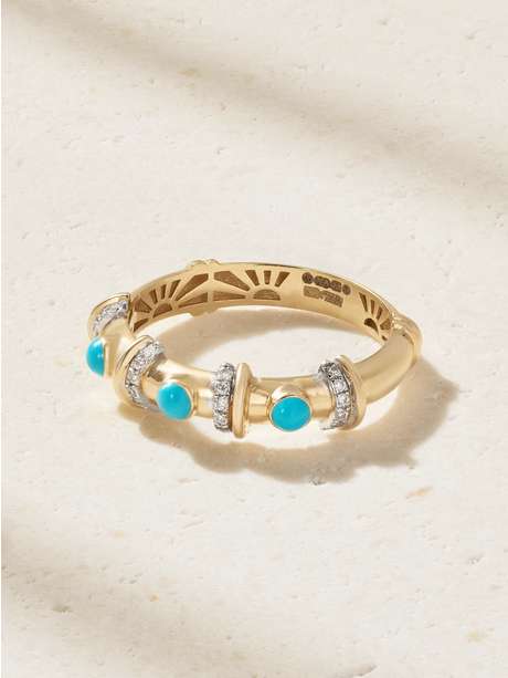 L'ATELIER NAWBAR Milky Way 18-karat gold, turquoise and diamond ring