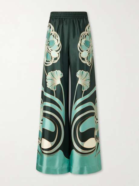 LA DOUBLEJ Palazzo printed silk-twill wide-leg pants
