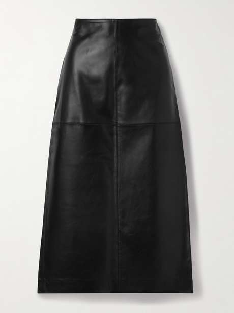 La Ligne's 'Vega' skirt is cut from panels of supple black leather. Designed in a classic pencil shape, it sits high on the waist and has a split midi hem.