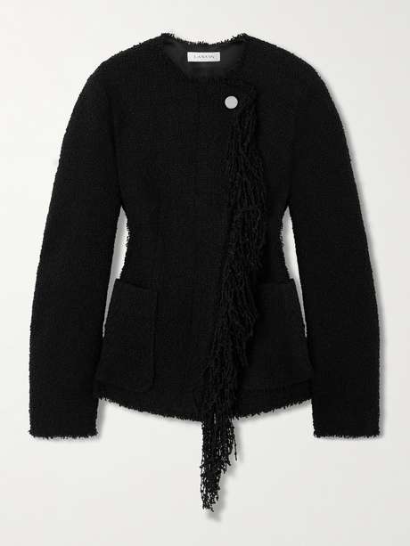 Lanvin's jacket is detailed with fringe cascading from the asymmetric placket, adding plenty of texture and movement. It's cut for a slim fit from tactile wool-blend bouclé and has frayed edges and patch pockets.