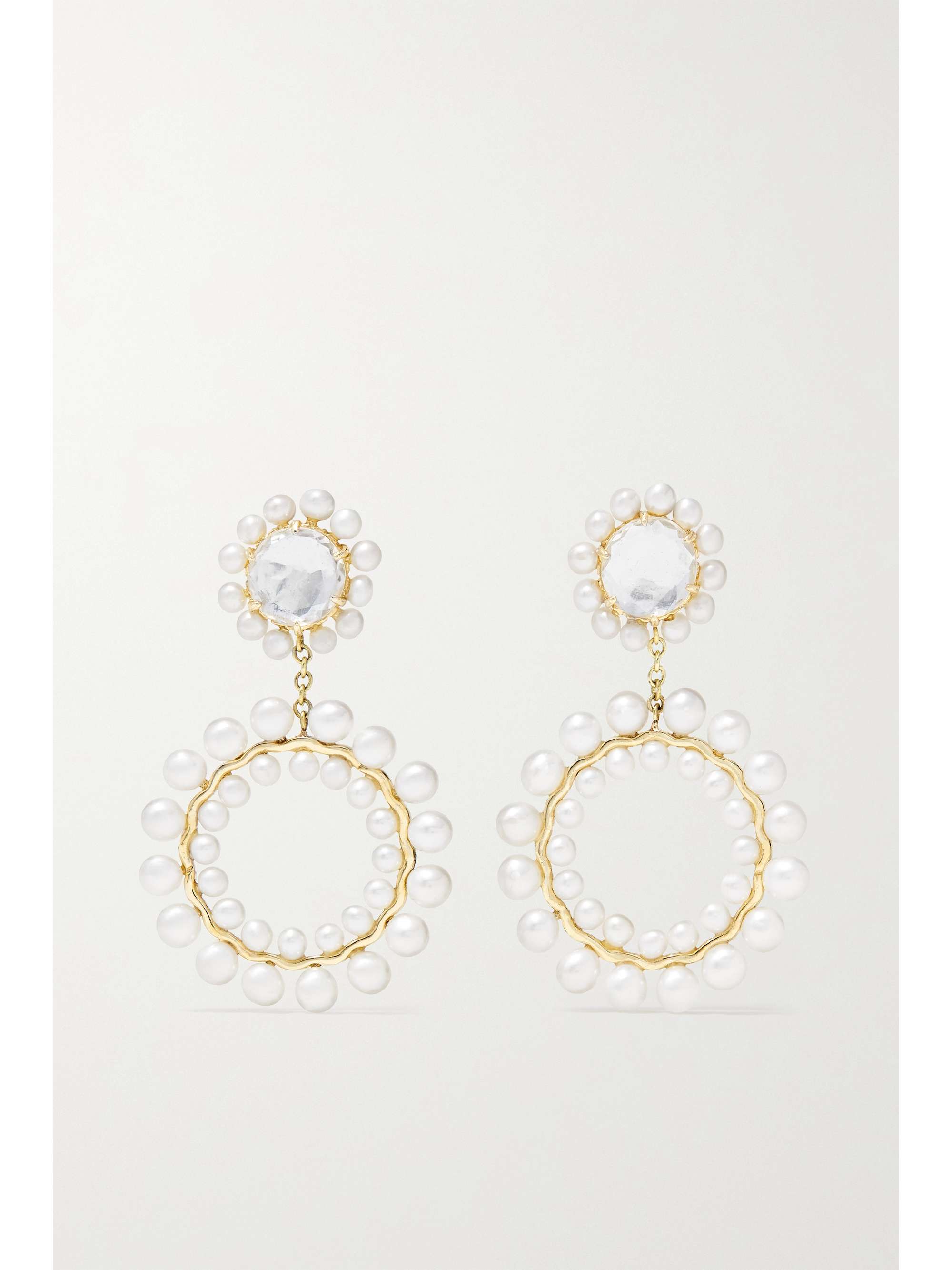 LARKSPUR & HAWK Olivia 14-karat gold, pearl and quartz earrings