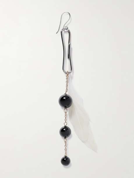 LEMAIRE Dot silver- and gold-tone, onyx and feather single earring