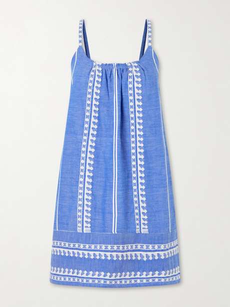Inspired by Ethiopian weaving traditions, LemLem, founded by Liya Kebede, centres craft and ease. The 'Zina' swing dress in Tebibi Blue moves with lightness, its airy volume and soft pattern creating a silhouette that feels both free and quietly expressive.