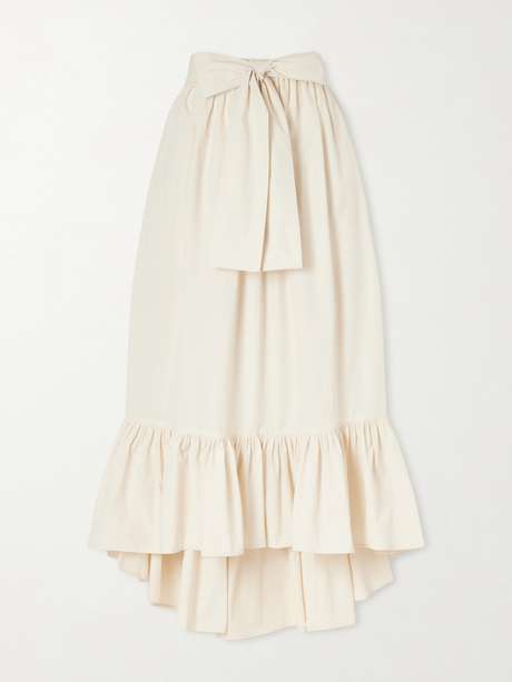 LISA MARIE FERNANDEZ Nicole tie-detailed asymmetric pleated tiered cotton-poplin maxi skirt