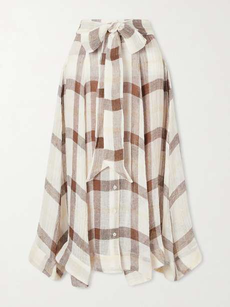 LISA MARIE FERNANDEZ Tie-detailed checked linen-blend gauze midi skirt