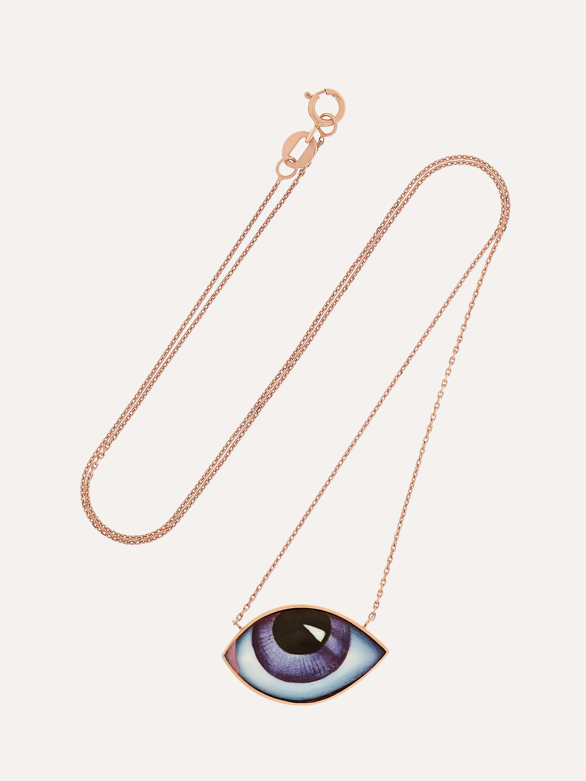 LITO Tu Es Partout 14-karat rose gold and enamel necklace