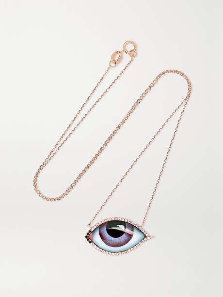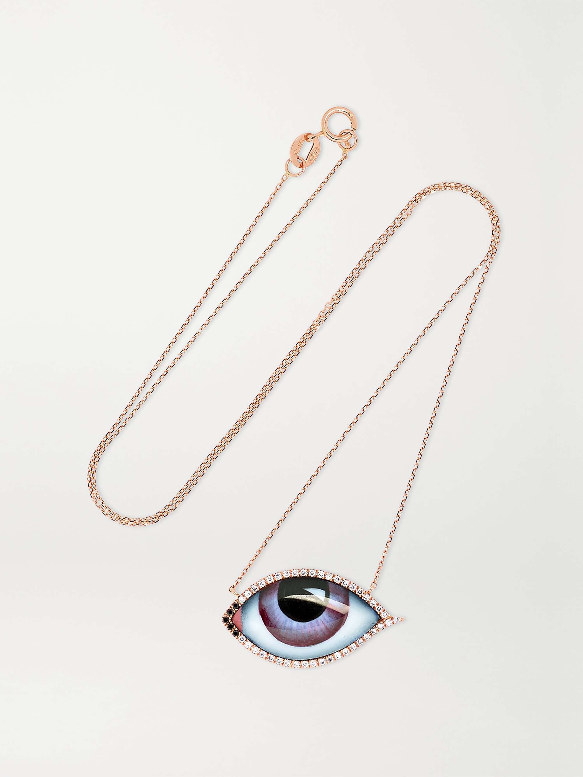 LITO Tu Es Partout 14-karat rose gold, enamel and diamond necklace