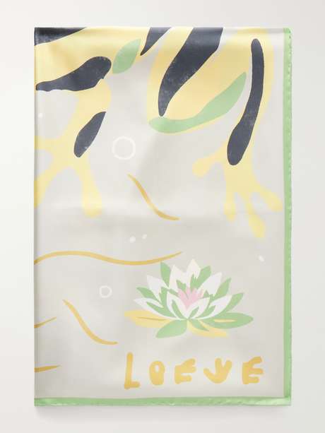 Loewe's scarf, made in collaboration with Paula's Ibiza, is crafted from silk and printed with various frogs and lotus flowers. Wear it tied in your hair or around your neck.