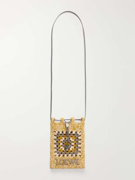 LOEWE + Paula's Ibiza leather-trimmed crocheted raffia bucket bag